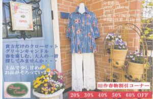 グリーンキャンドルでは、9/12(木)~10/5(土)まで、オータムフェアを開催しております。 期間中、お洋服をお買い上げいただきましたお客様に、素敵な雑貨をプレゼントいたします。 また、「秋冬物」50%OFFコー […]